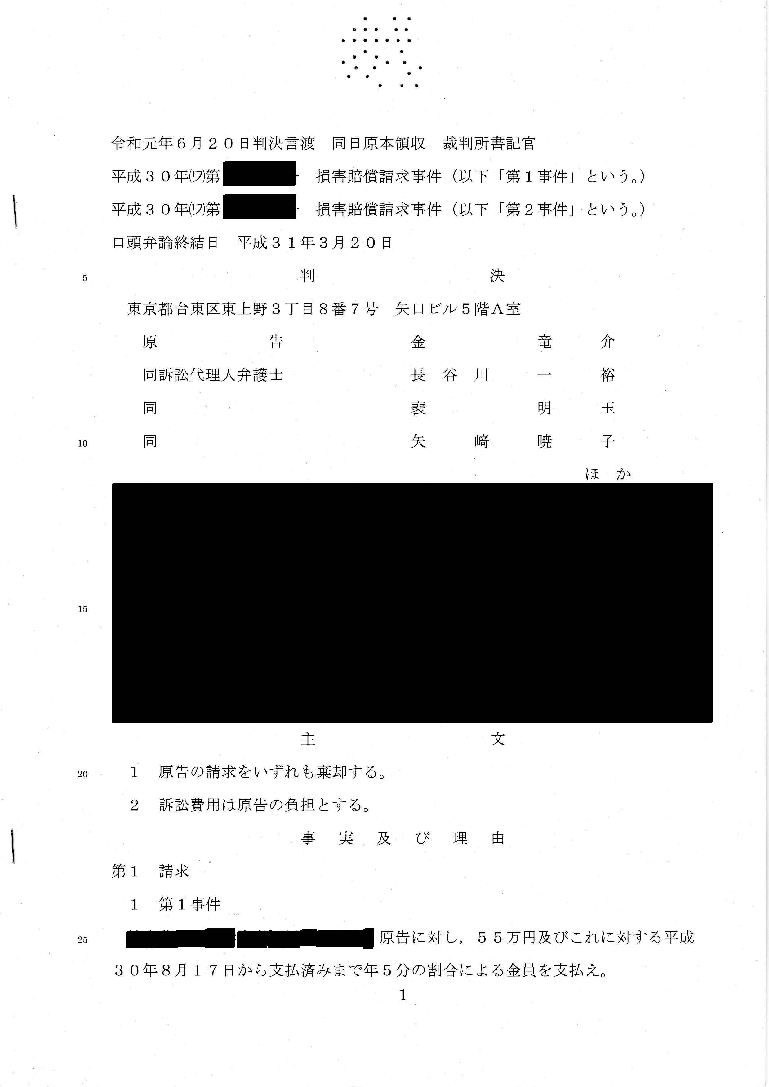 ■原告神原元弁護士・宋惠燕弁護士 東京地裁民事第1部 棄却判決 平成31年4月25日