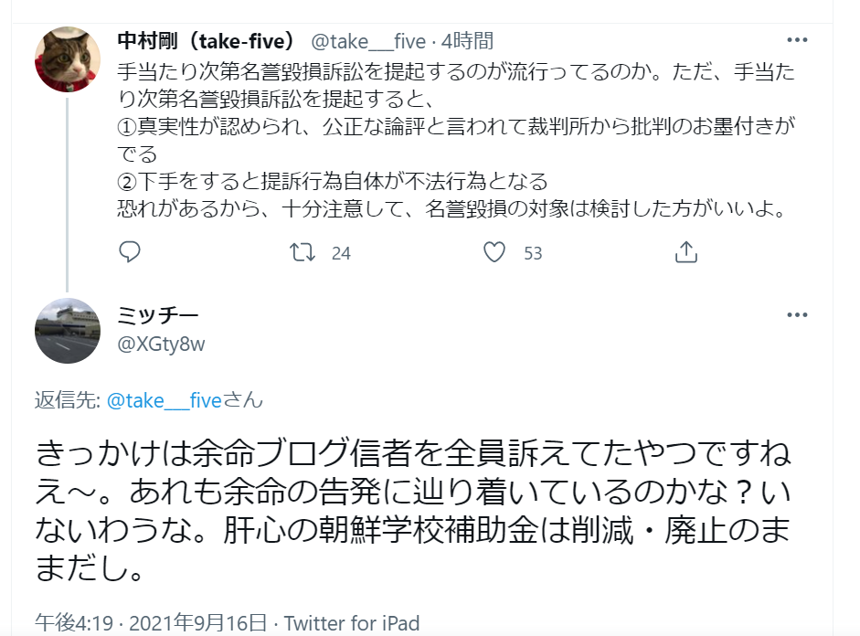 このツイッター発言、あきらかに侮辱ですね。懲戒請求されてしまうのでは?心配です。