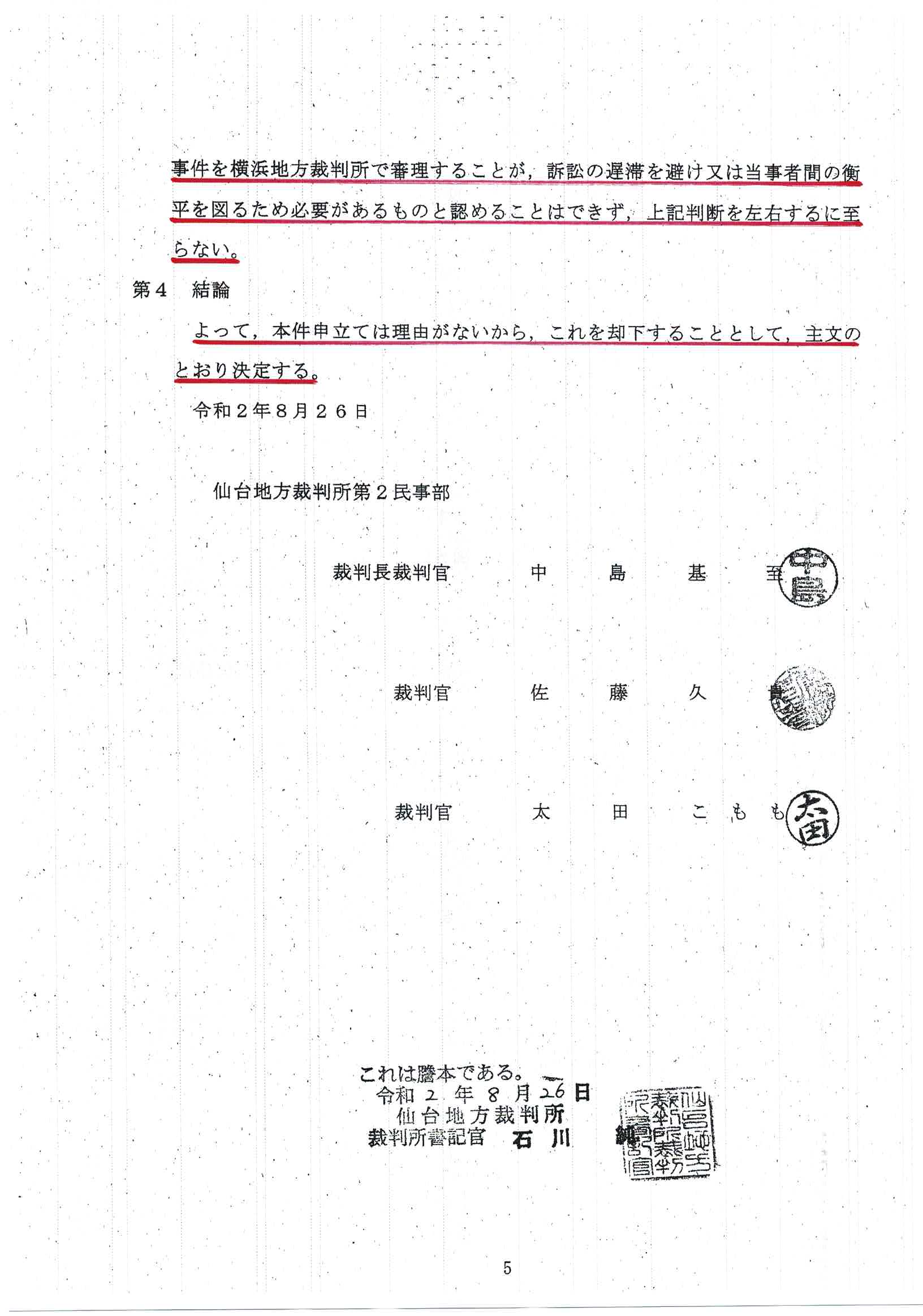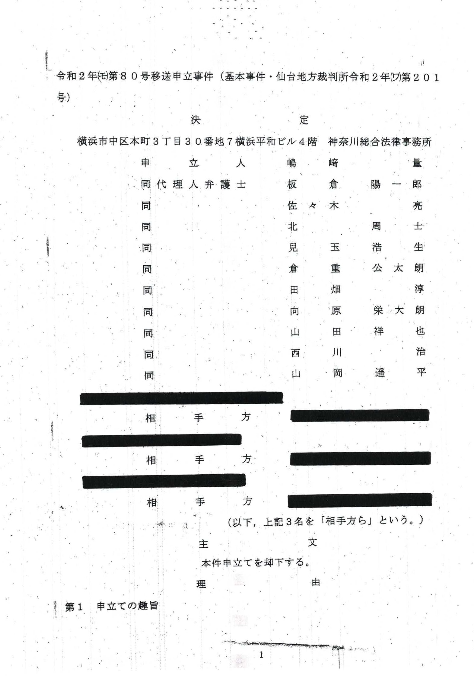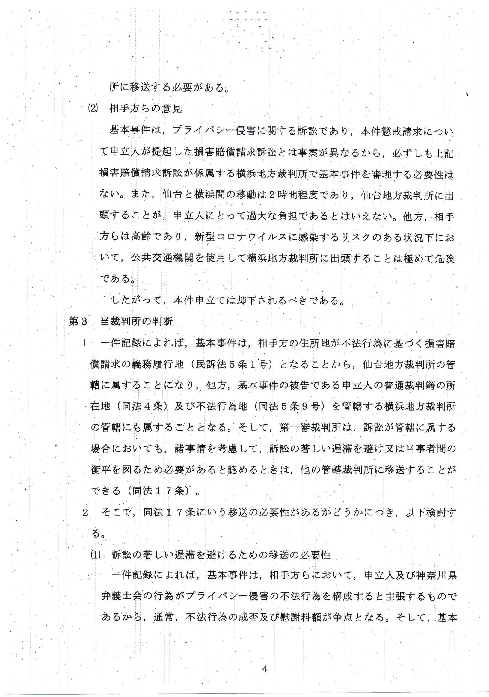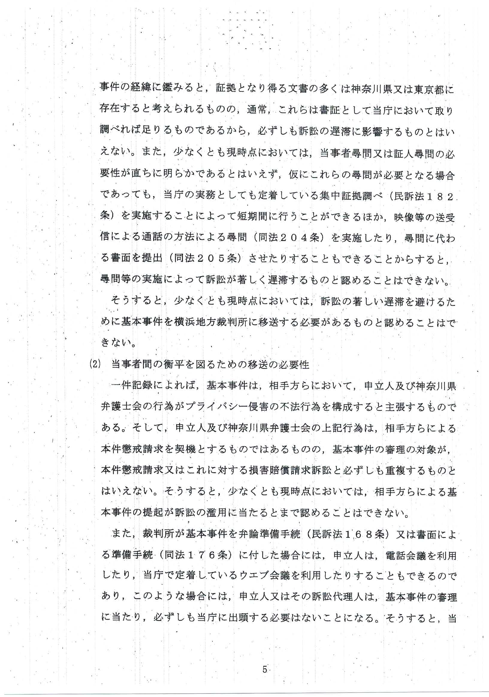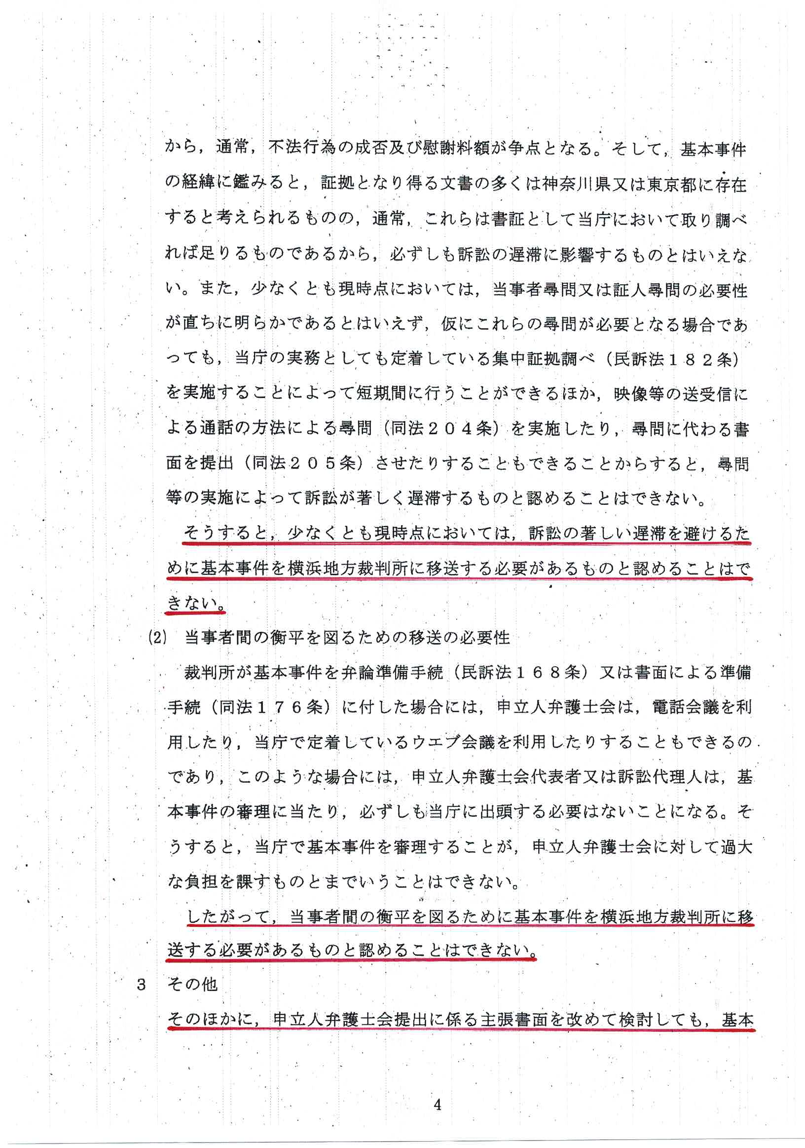 神奈川県弁護士会4名と嶋﨑量以下10名の弁護士のプライバシー侵害損害賠償事件移送申し立てが却下された。完膚なきまでの叩かれようで、面目丸つぶれである。