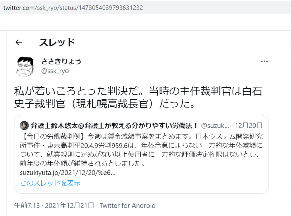 だって今から13年以上も前から、白石史子裁判官(現・札幌高裁長官)から、