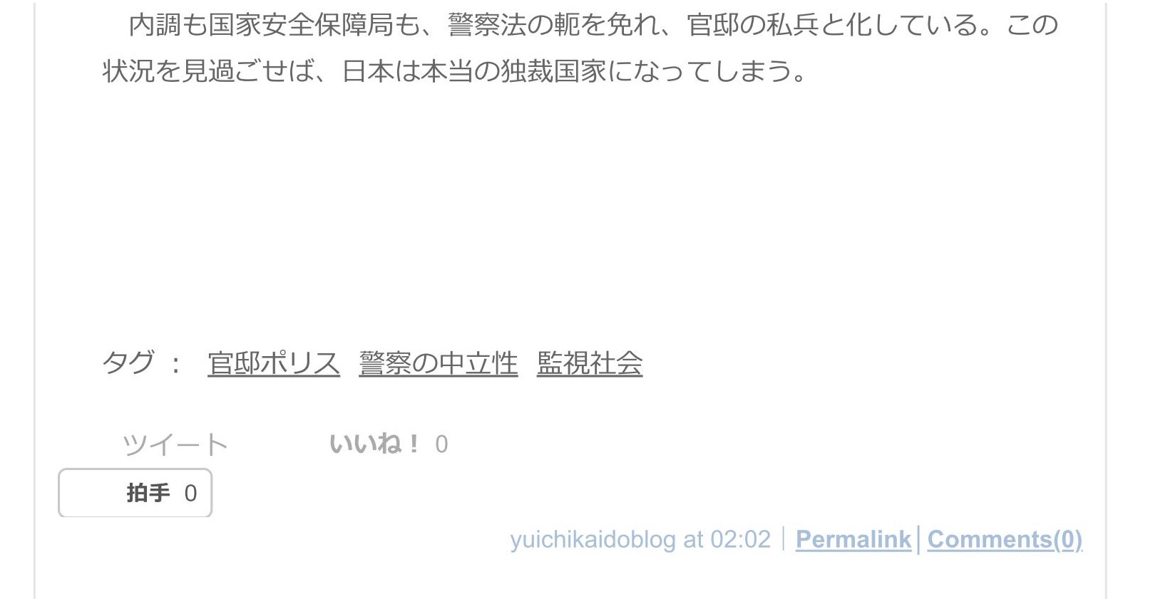 官邸ポリスとか、失礼ながら「頭湧いてんじゃないの?」としか思いません。