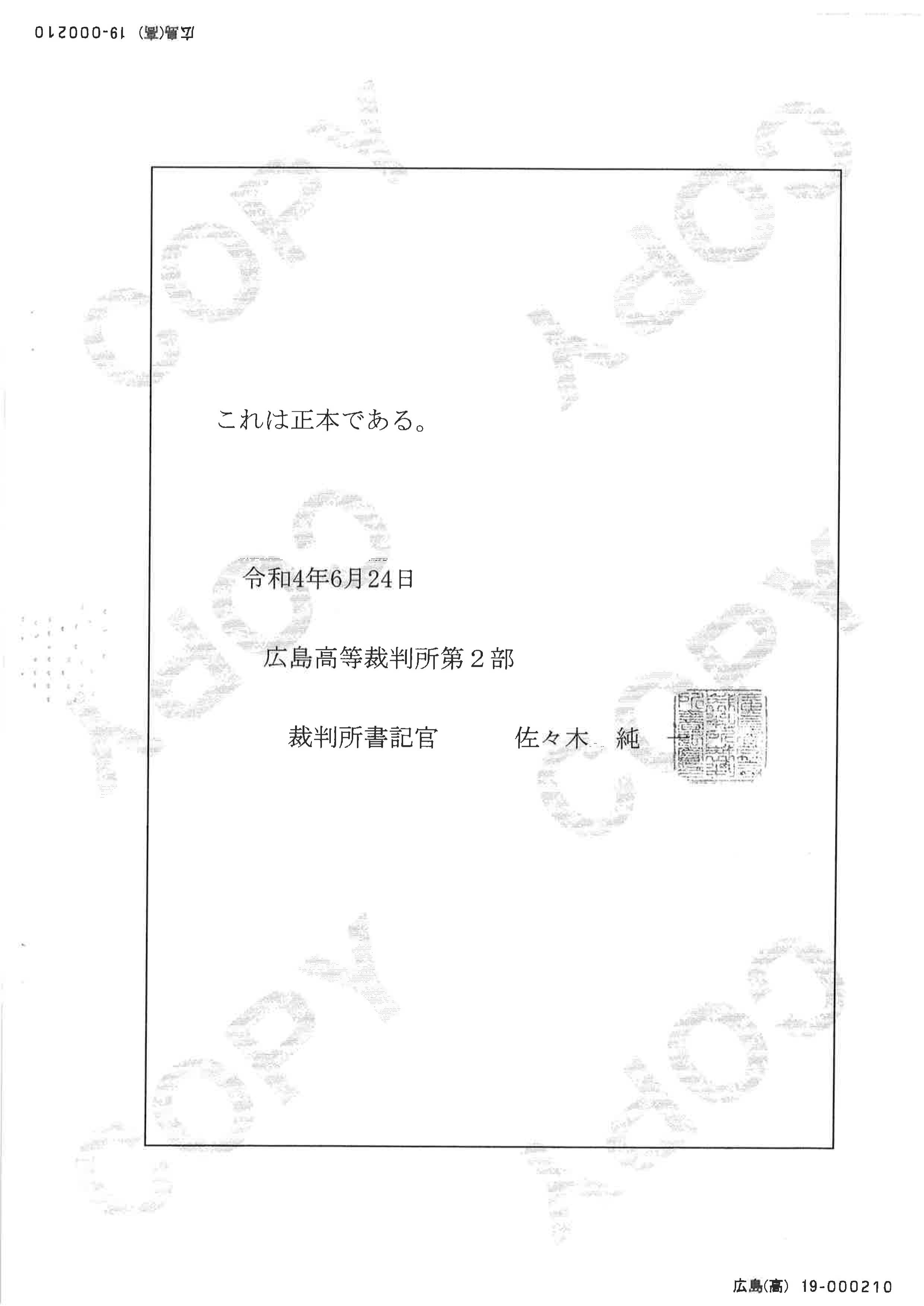 先日お伝えした広島高等裁判所の棄却判決ですが、原告は佐々木亮弁護士単独だということがわかりました。