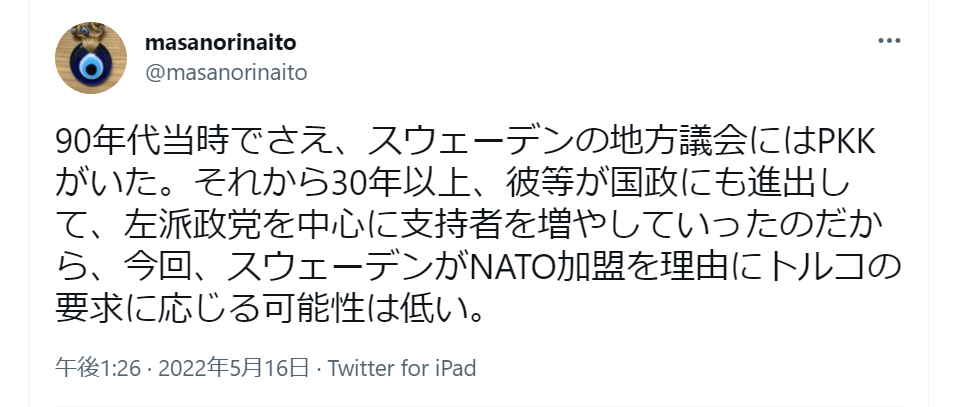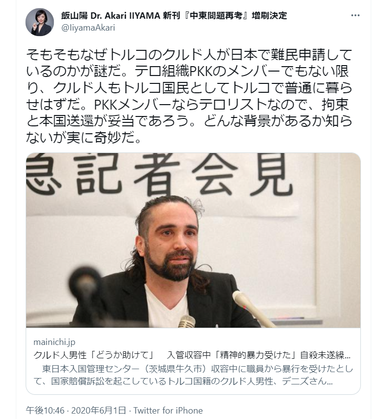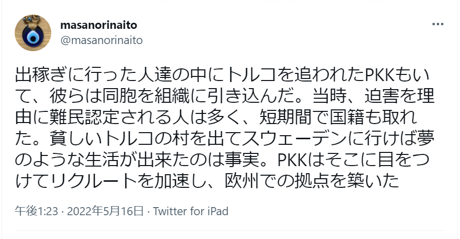 そもそも専門家によりますと、現在クルド人難民は存在しません。強制送還を恐れるのは武装組織と関係がある人物だけと述べられています。穏やかではありません。